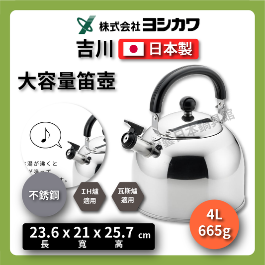 吉川|4L不銹鋼笛|日本製/音壺/笛壺/茶壺/大容量/笛吹/不銹鋼壺/電磁爐可用/泡茶/露營/SJ-2702