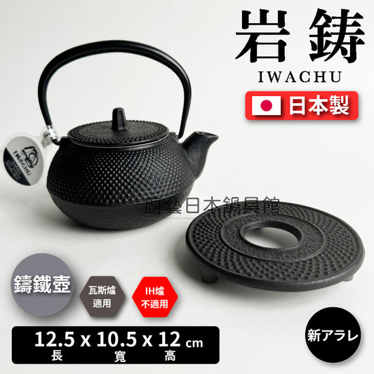 🫖 岩鑄|1.3L 14型平六アラレ黑燒付|南部鐵器/鑄鐵壺/鐵壺/ 鐵瓶/無塗層/煮水/泡茶/露營#11938