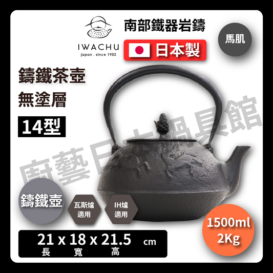 🫖 岩鑄|1.5L 14型馬肌|IWACHU 南部鐵器/鐵壺/鐵瓶/開水壺/普洱茶/無塗層/泡茶/煮水-11937