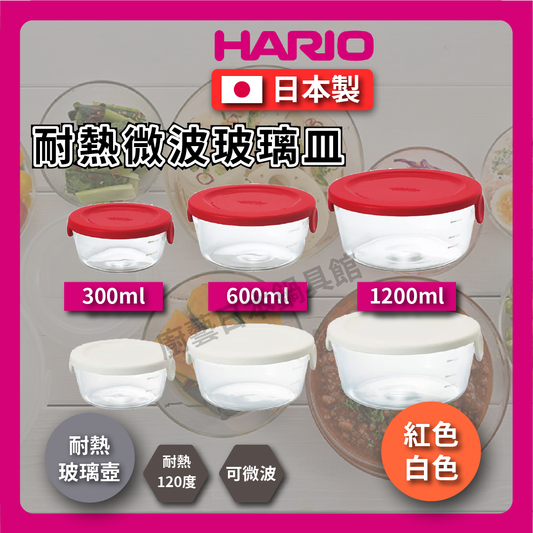 HARIO |耐熱微波玻璃皿附蓋|白色 紅色|圓型耐熱玻璃保鮮盒/三入保鮮盒/便當盒/收納盒/小物盒-SYTN-25
