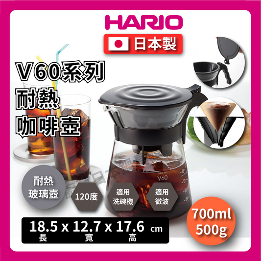 HARIO |700ml咖啡壺|附濾紙/V60系列咖啡壺/VDI-02咖啡壺/咖啡壺/滴漏壺/泡茶/領熱兩用玻璃壺