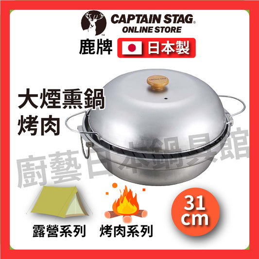 ⛺️ Deer CAPTAIN STAG|31cm large smoker pot|Outdoor camping/barbecue/BBQ/hot pot/smoked chicken/smoked pot/lightweight/iron pot/M-6548