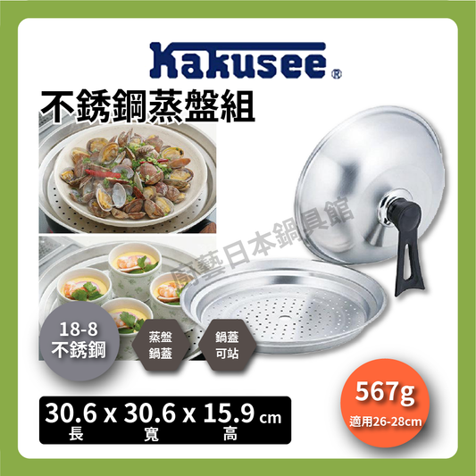 カクセー|18-8 stainless steel round steaming tray|With lid|26-28CM suitable steaming tray/steaming tray with lid/stainless steel steaming tray set/steamer/steamer