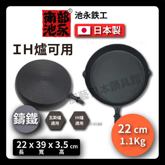 Chi Yong|22cm lightweight wooden handle pan|Nanbu iron/pan/griddle/lightweight/removable handle/iron pan/cast iron pan (414500)