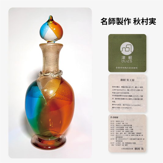Sale日本津輕玻璃|秋村実作品|聚寶盆|酒瓶