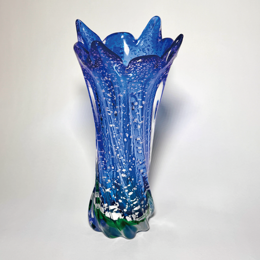 Sold out日本津輕玻璃|水藍花形銀箔玻璃花瓶|