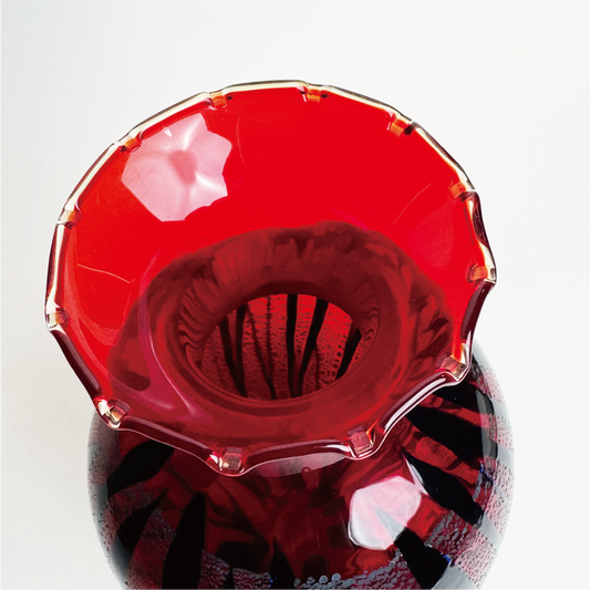 Sale日本津輕玻璃|石塚硝子|寶石紅玻璃花瓶|