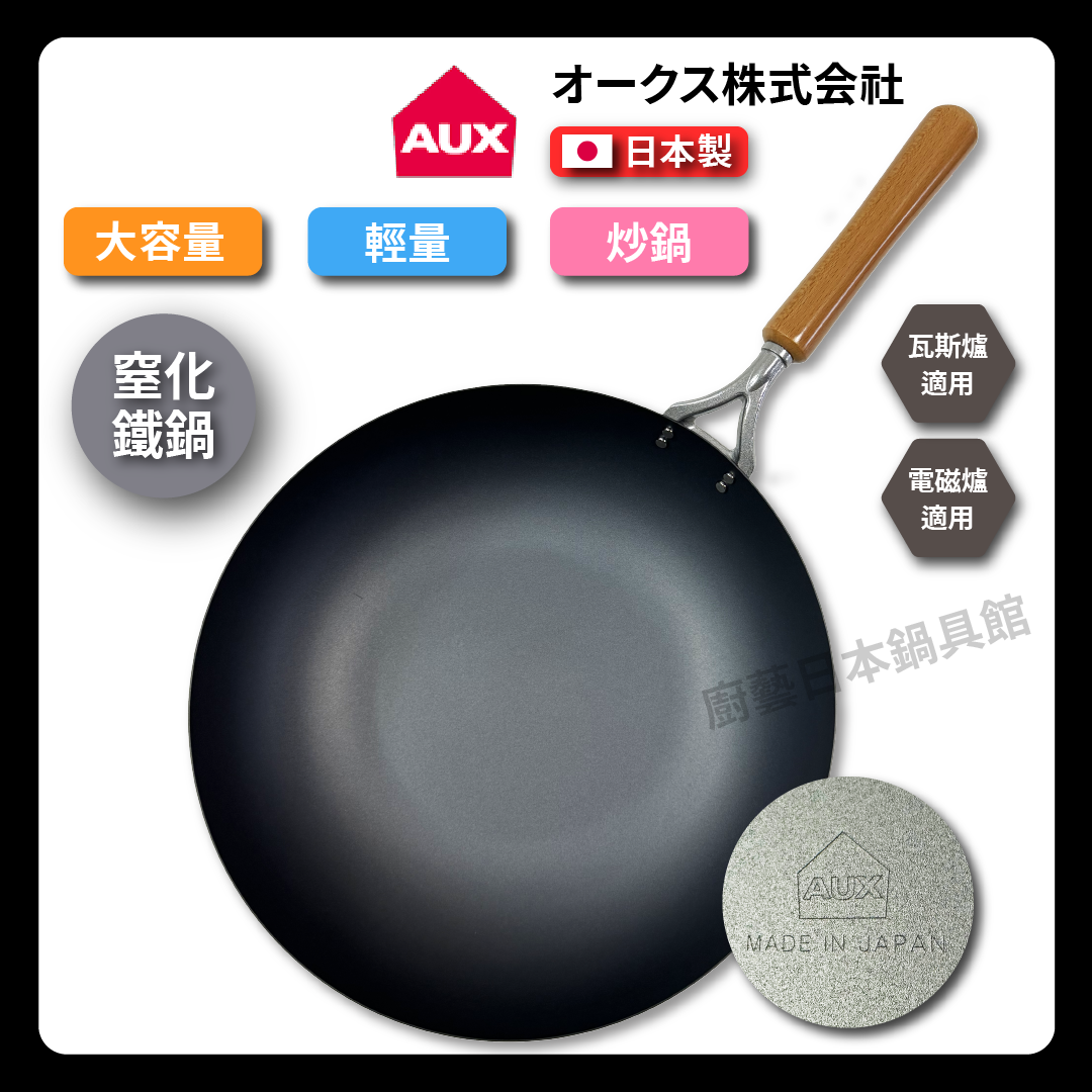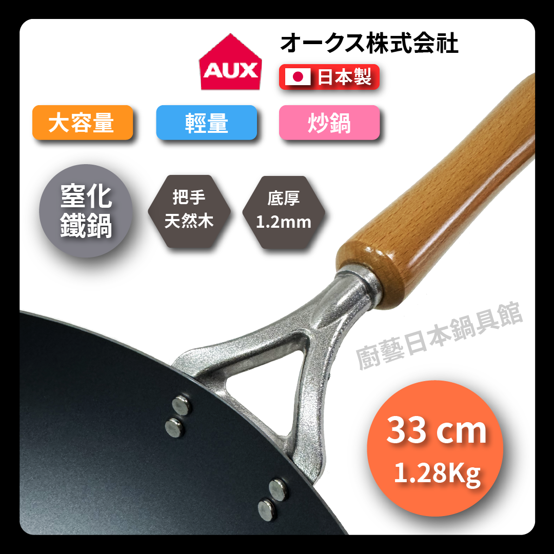 AUX | 33 cm | Sulfated iron pan | Made in Japan | Kosu Co., Ltd. | Sulfated lightweight iron pan