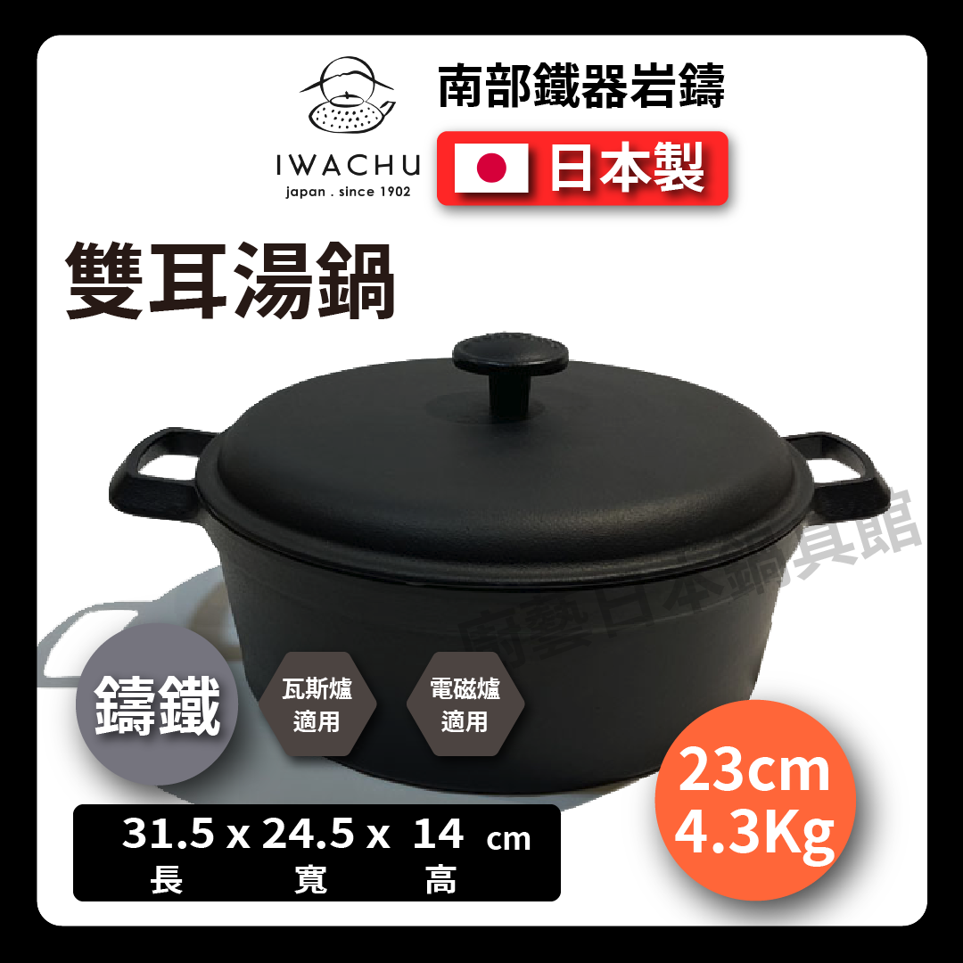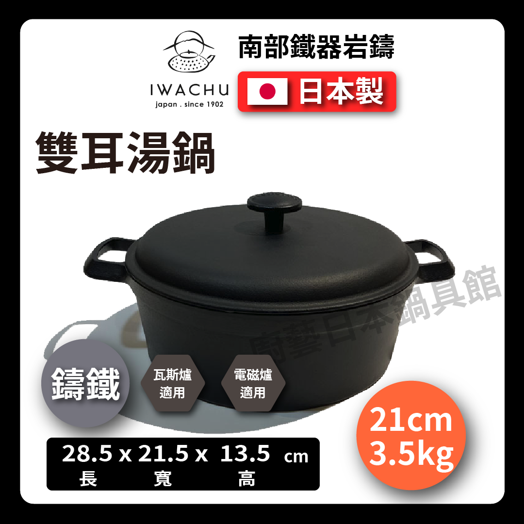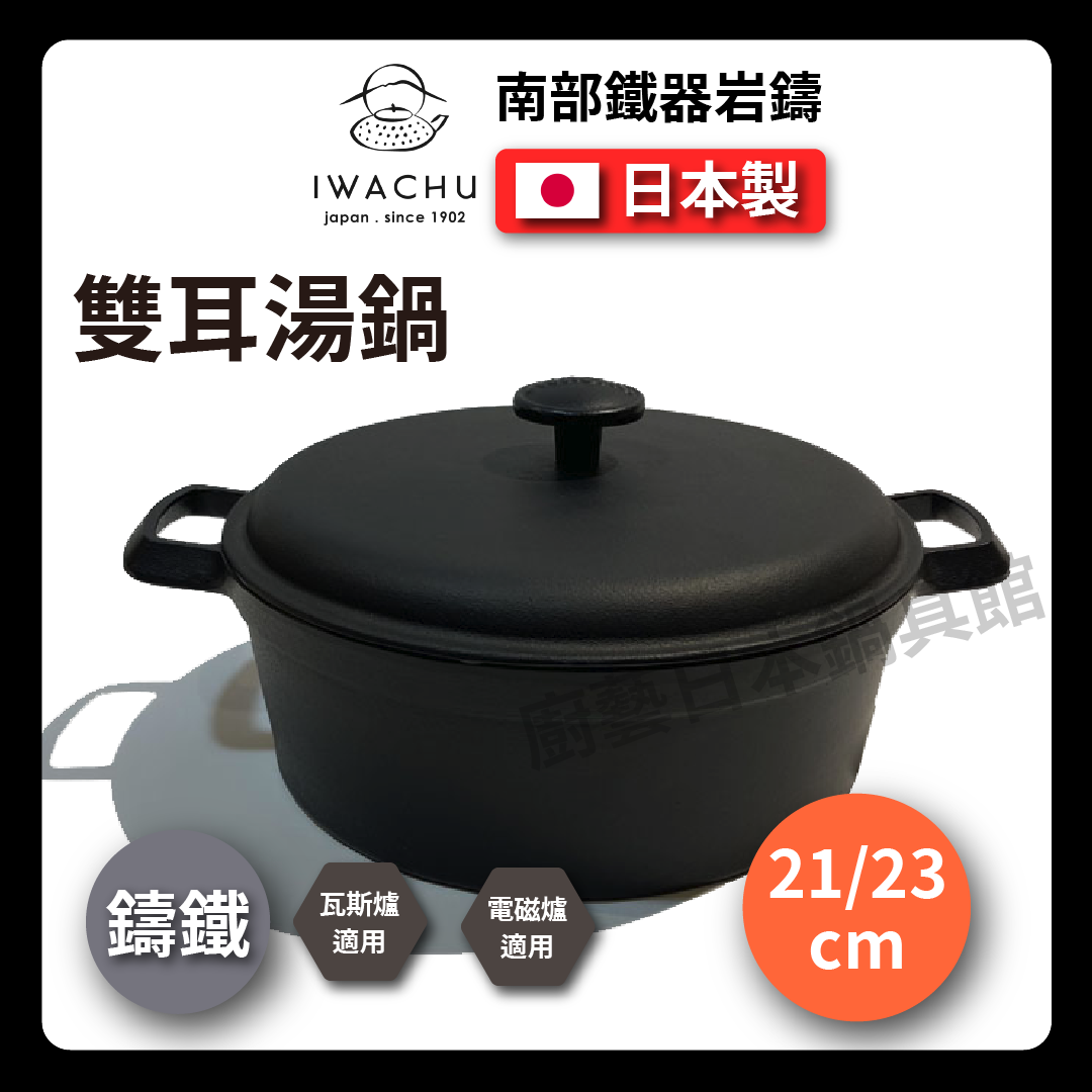 岩鑄|21/23 公分鑄鐵雙耳湯鍋|附蓋 /鑄鐵鍋/湯鍋/雙耳鍋/南部鐵器/鐵鍋/附蓋湯鍋/ 2163X