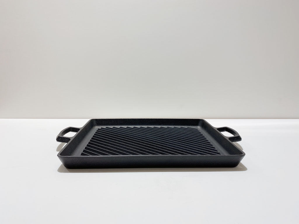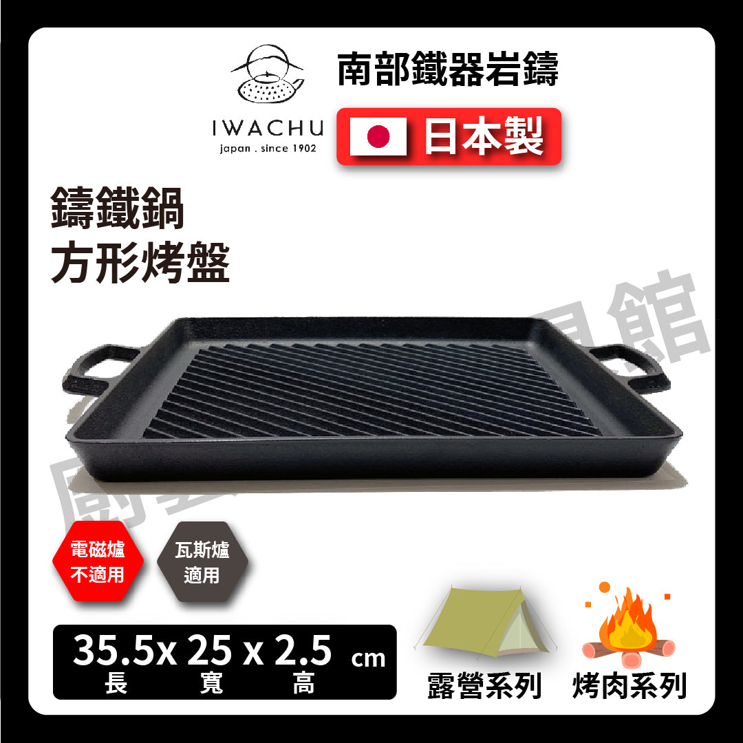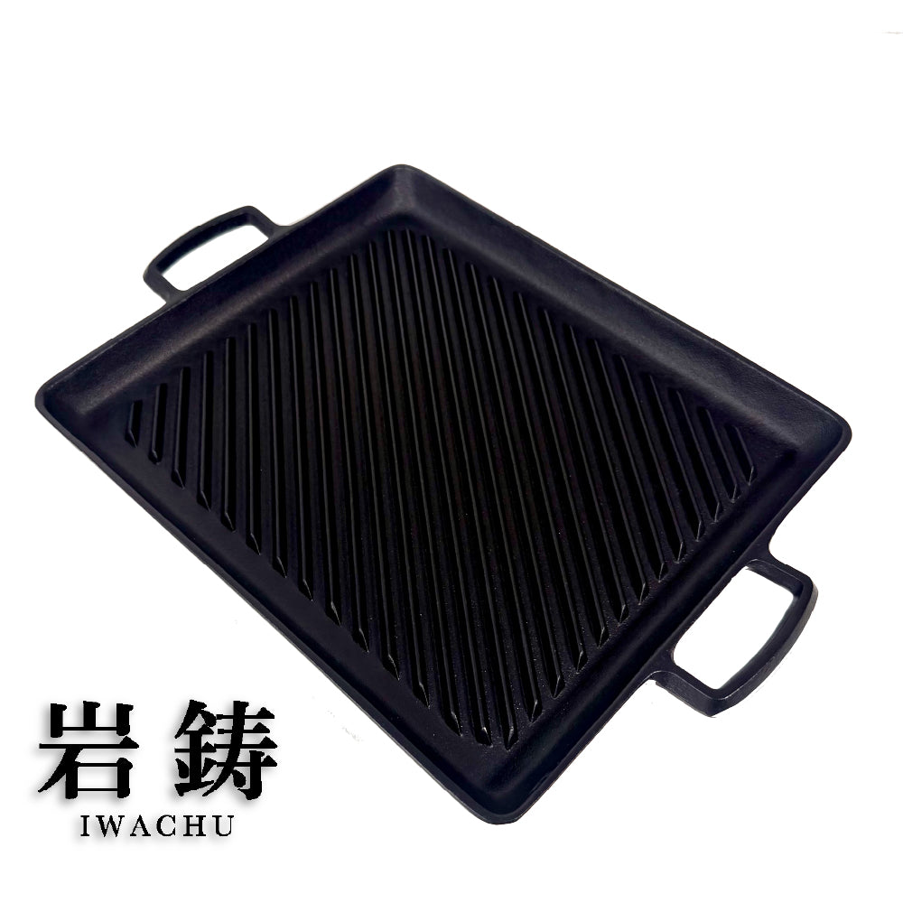 岩鑄|鑄鐵條紋平底烤盤|方形烤盤|鐵板燒料理|南部鐵器|鐵板烤肉盤烤肉|露營|#23014